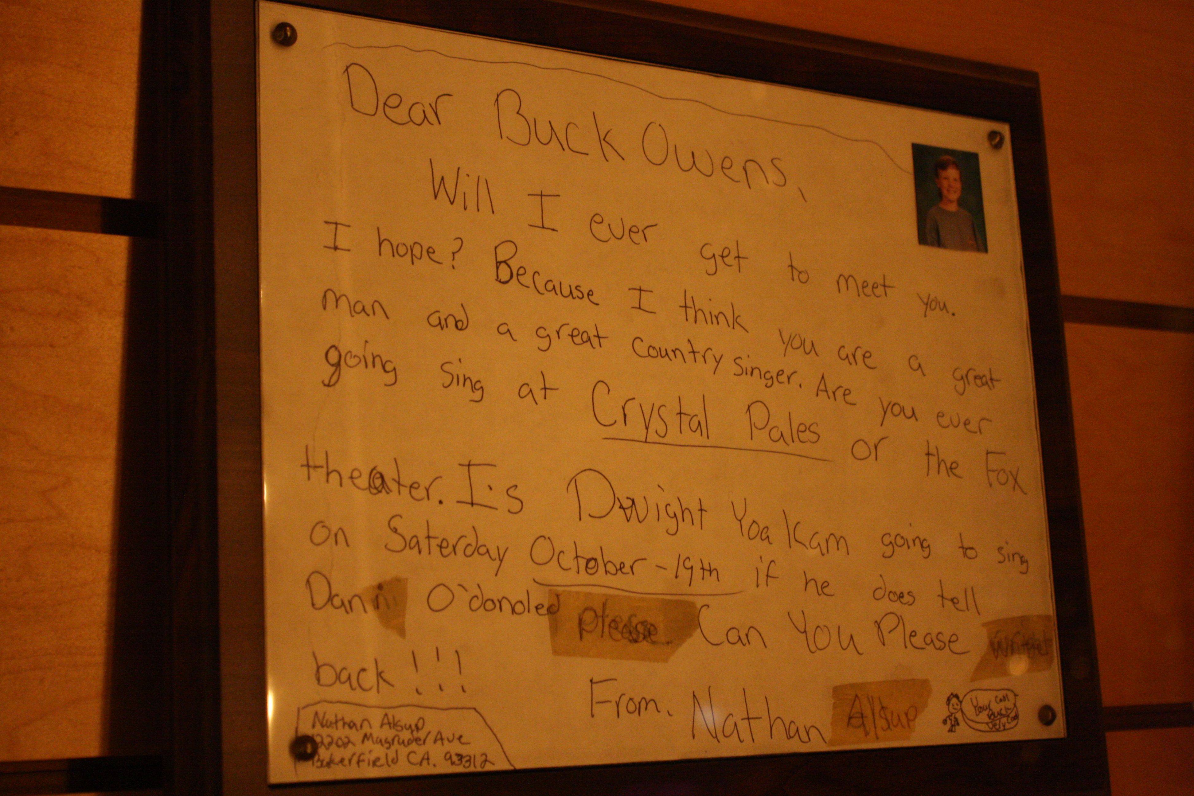 So, where do you go once you pull into Bakersfield on a Friday night? Before checking into our hotel, we parked in the Crystal Palace lot and saw a KUZZ truck situated outside, call numbers for the radio station Buck Owens purchased in 1966, still owned by his estate. We had planned on coming to Bakersfield on a Friday so we could catch Buck and Don’s band the Buckaroos, who in their current incarnation still play nearly ever Friday night at the Palace, Buck and Bonnie Owens’ son Buddy occasionally joining them.