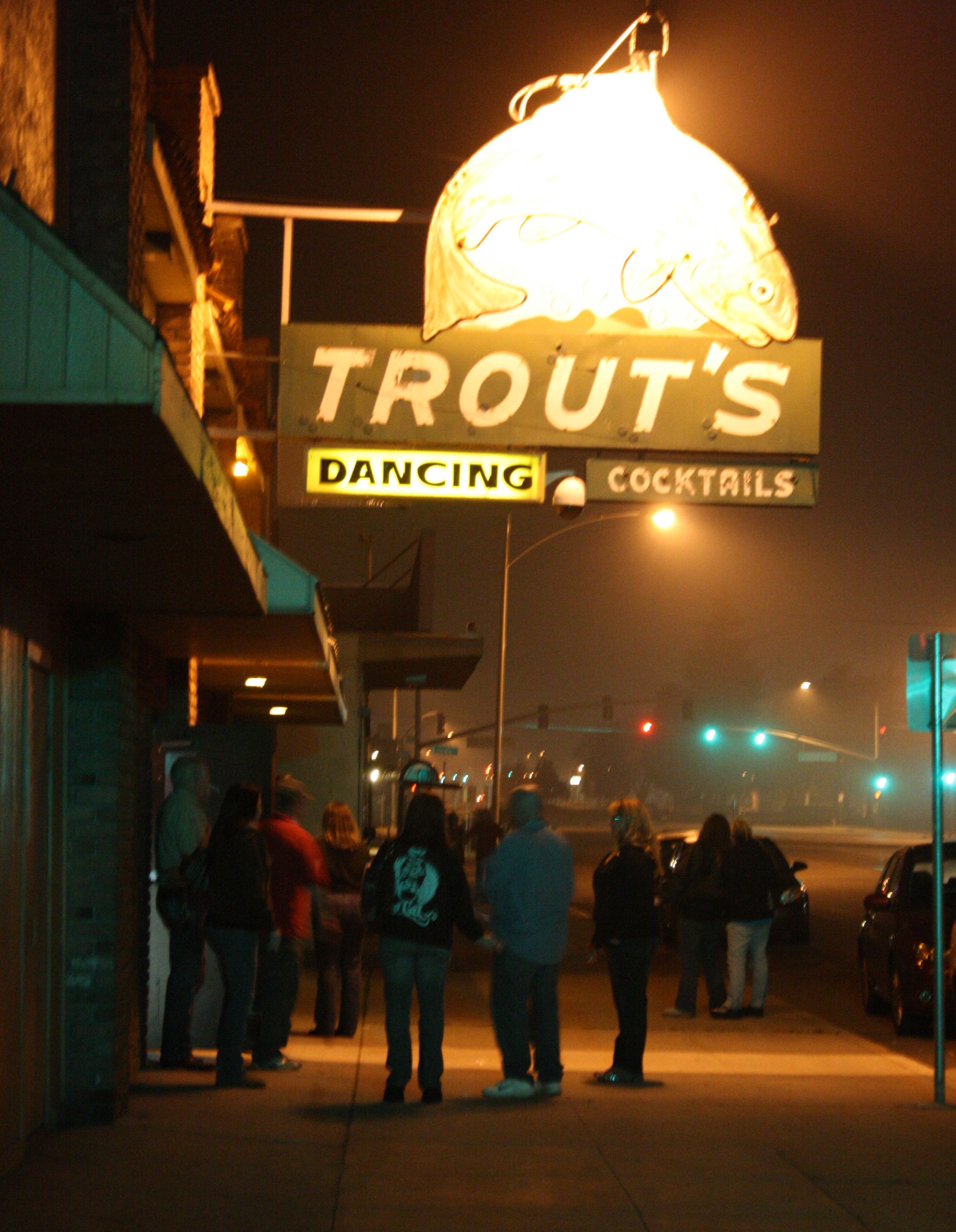 So what do we do? We stayed in at the La Quinta Inn and ordered Pizza Hut, that’s what. And we decided we needed to find a drink in a place without racists, date rapists and saxophone-playing karaoke hosts. So that night we headed to Trout’s, located at 805 North Chester, about ten blocks away from the Haggard boxcar.